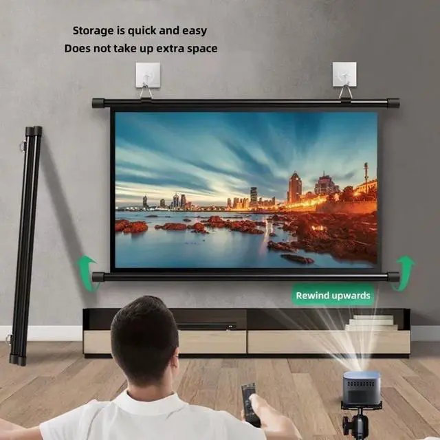 Easy to StorageManually pull down the movie screen, easy to store and carry, light weight, and won't take up extra space after storage.