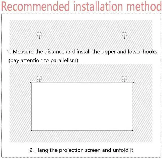 Installation: Measure the distance of the movie screen, install the sticky hook (pay attention to keep parallel), and then unfold the projection screen to start the experience