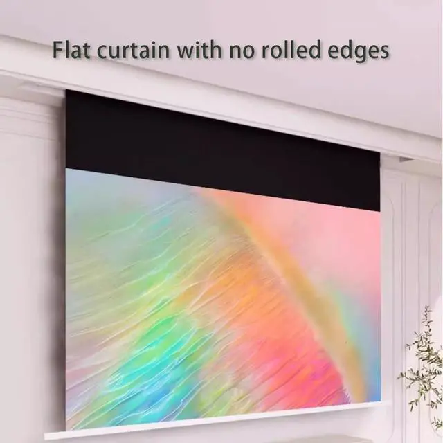 Easy To Install: it can be pulled down to fix the screen precisely to the specified position. The edges are made by a special process and will not roll or warp even after long time use. The projection screen is easy to clean with water