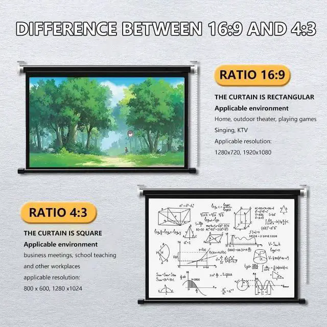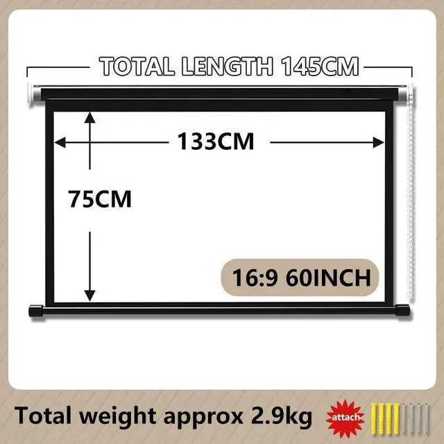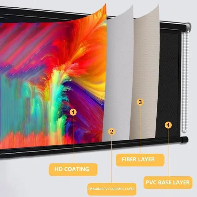 Indoor and outdoor projector screen is made of metal head made of metal head, durable and not easy to break, easy and fast installation. Can be wall or ceiling mounted
