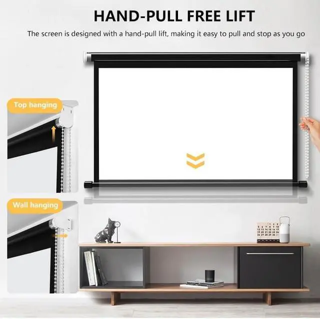 Wall-mounted projector screen is flat and non-curling, installed on the wall with good stability, to give you and your family, coworkers or friends to experience a better viewing effect