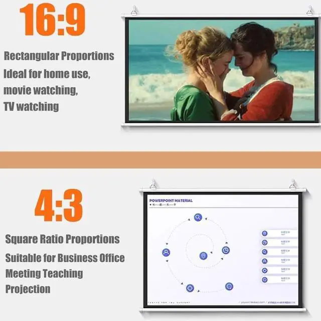 Wide Application: Our Projection Movie Screen is perfect for various scenarios, such as home theaters, KTVs, bars, meeting rooms, schools, and more. It can be used both indoors and outdoors