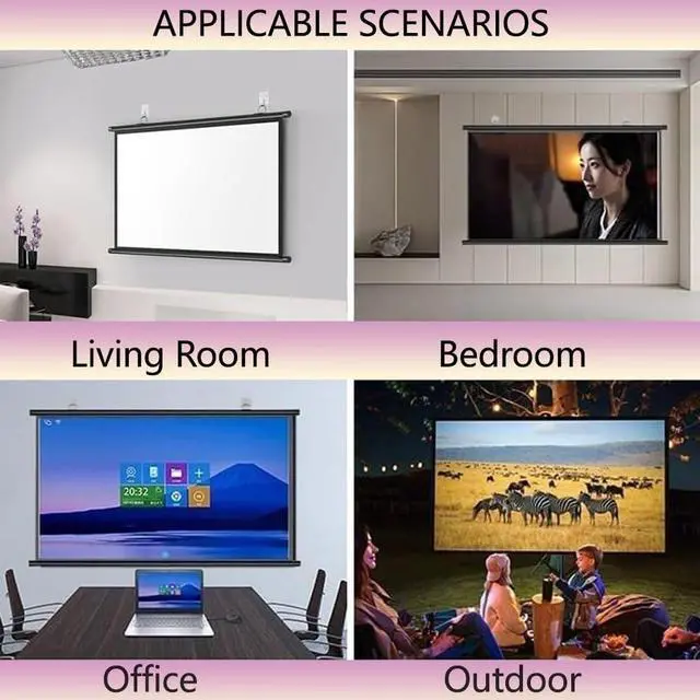 Quick installation: The screen is perfect for mounting on walls and ceilings. Our projector screens can be easily assembled