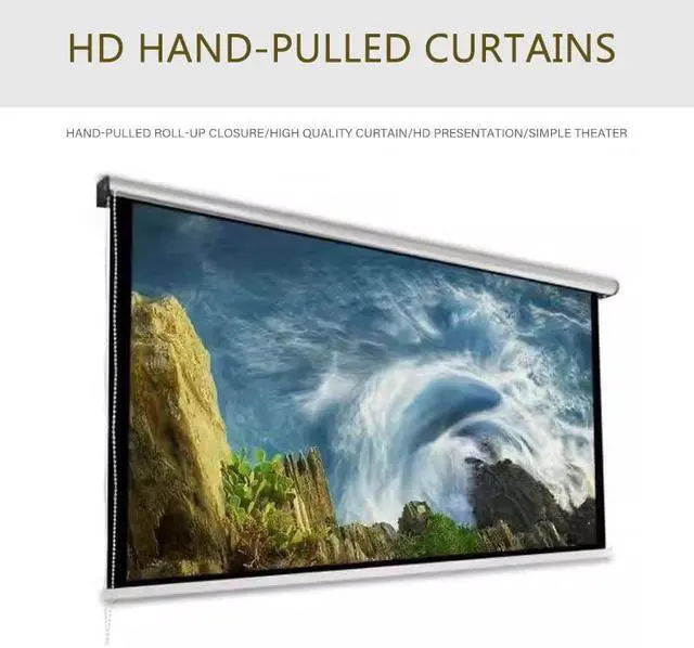 Convenient foldable movie screen material is white glass silk woven backing cloth, manual pull-down movie screen is easy to use and simple to install