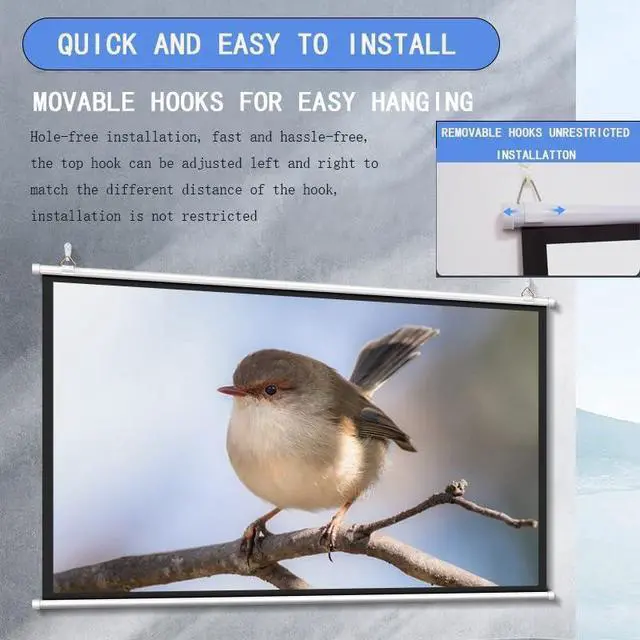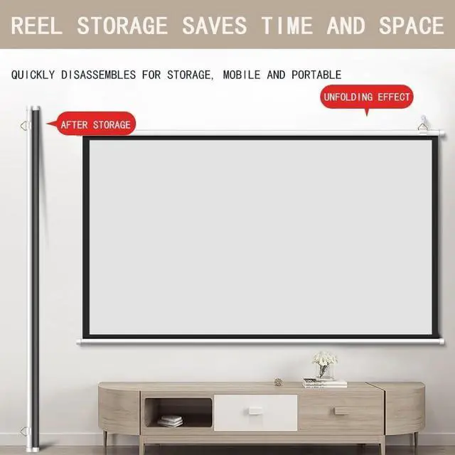 Projector screen is easy and quick to store, just roll it up and store it, and it will not take up extra space after storage. Ideal for both indoor and outdoor use