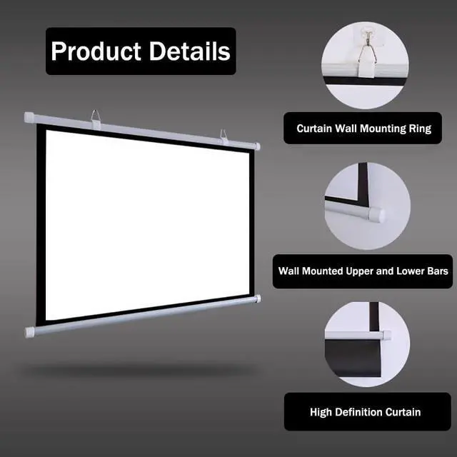 Material: The manual pull down projector screen is made of white fiberglass with true color rendering and good light transmittance resistance, bringing you and your family a high-definition visual experience.