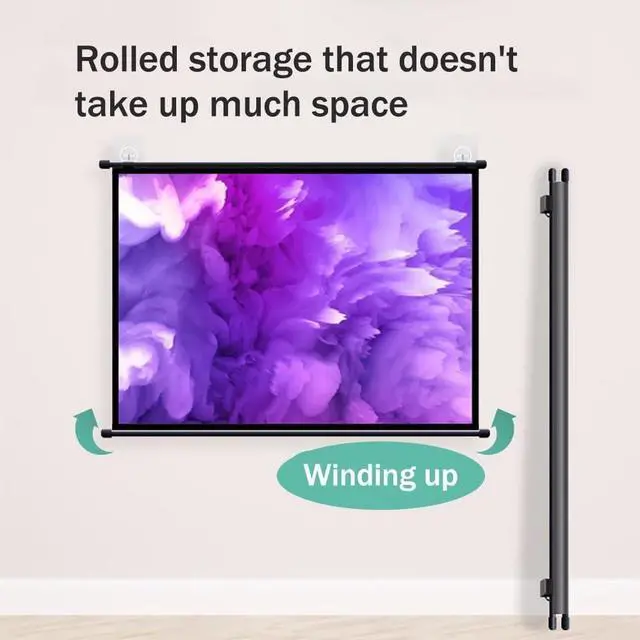 Portable: The manual drop down projection screen is lightweight, easy to carry and store, and can be mounted on the wall or ceiling to save time and space.