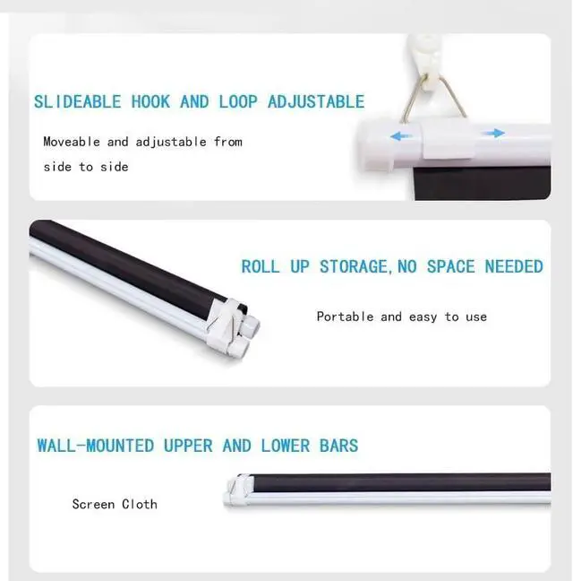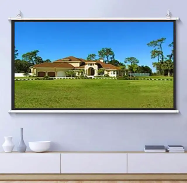 Projector screen is very portable to carry and foldable for storage, save the space. Using hooks or ropes to hang it on the wall. You can easily enjoy the best visual feast indoor with your families, friends and colleagues