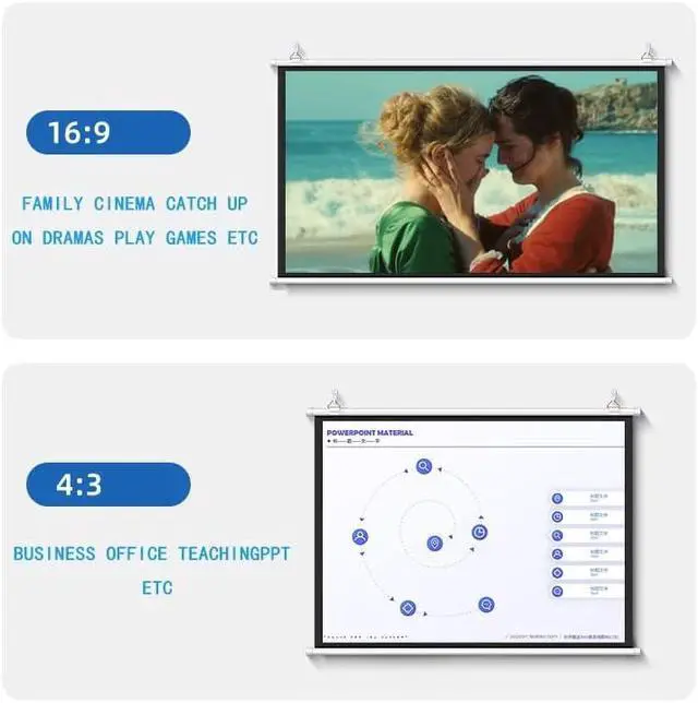 Diffeient Occasions: This portable screen is suitable for different scenarios, such as meeting/playing PPT/training or home theater, watching movies, TV shows, etc. can be used for presentations and other public displays