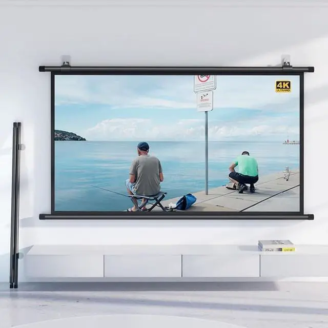 Portable: Manual pull-down movie screen, lightweight, easy to carry and store, can be installed on the wall or ceiling, saving time and space.