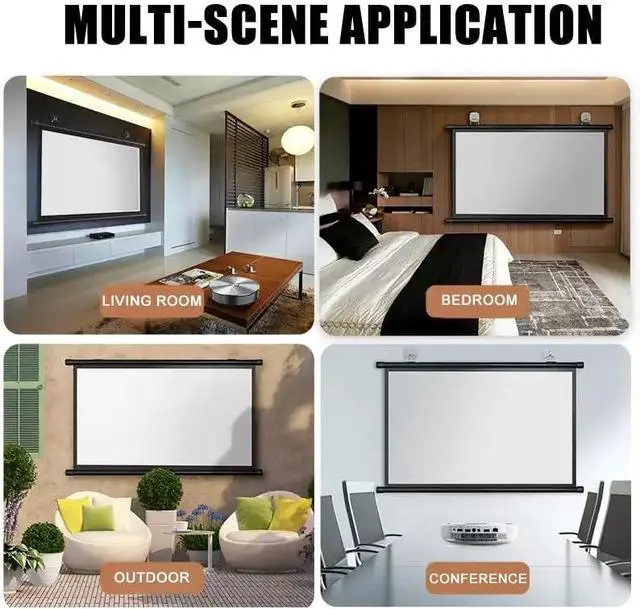 Application: wall mounted projection screen is suitable for home theater/corporate meeting/education training/K song/outdoor camping/garden party/game etc