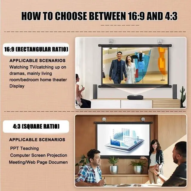 Format: the wall-mounted projection screen adopts 4:3/16:9 format, and the screen supports 3D 4K and Full HD images, which brings you a good visual enjoyment