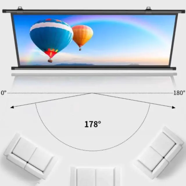 Projection screen has a 178° wide viewing angle, every angle can be clearly displayed. Soft colors will not cause eye fatigue with long-term use.