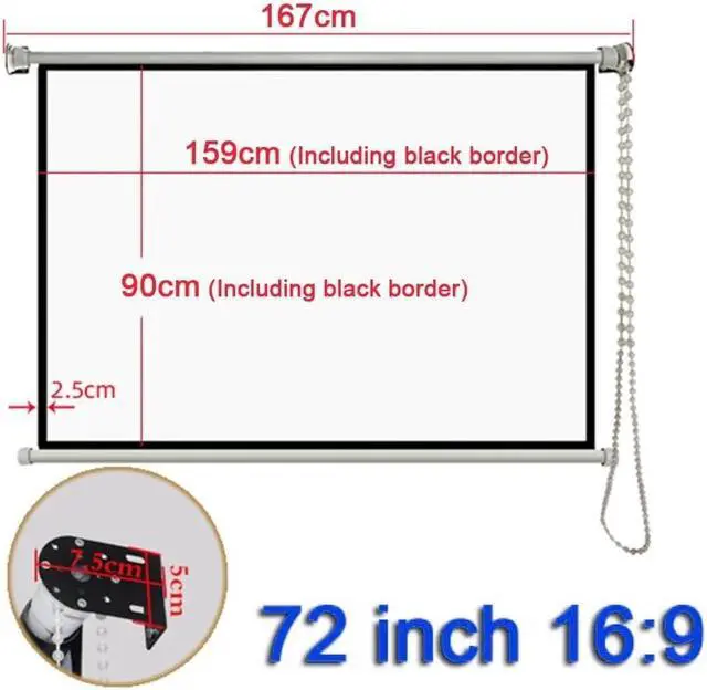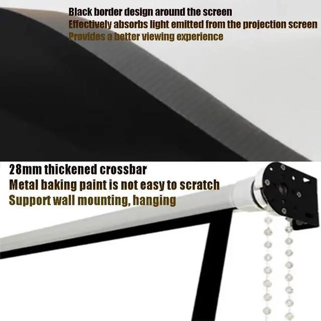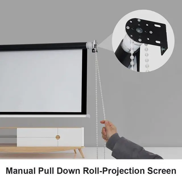 MATERIAL: Manual lifting projection screen is easy to install, and the material is a bottom cloth woven from glass wire. The surface layer is coated with special projection PVC material.