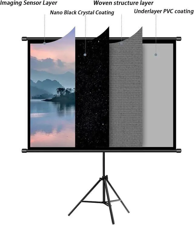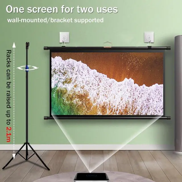 The projection screen offers a dual design. Versatile portable projection screen that can be mounted on the wall. It can also be fixed with a bracket. Very convenient to carry. This projection screen with stand has two ratios: 16:9 rectangular ratio, suitable for home use/watching movies and TV, etc. 4:3 square ratio, suitable for office/conference teaching, etc.