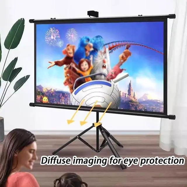 Tripod projection screen: Projection screen 4:3/16:9 tripod independent projection screen. It does not require any construction on the wall and can be used as long as there is space to open the tripod. Just turn on the tripod, pull up the screen and hang it on the hook