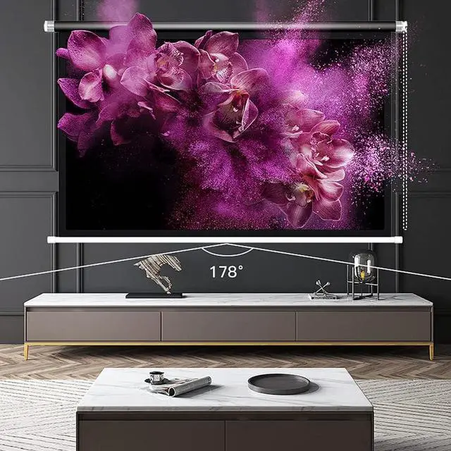 Wall mounted projection Screen equipped with a high-quality white glass fiber screen avoiding light reflection and bringing you and your family a high-definition visual experience
