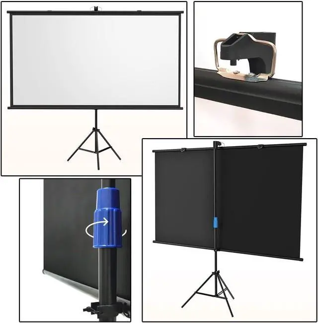 • Portable and mobile projection: This portable projection screen is convenient and lightweight, and can be easily rolled up to save space. The tripod stand can also be folded and multi-terminal telescopic. The operation is very convenient and can be completed in a few minutes. Making it perfect for indoor, outdoor, travel.