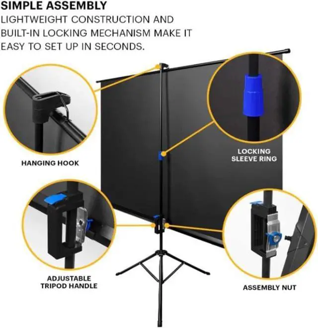 Easy to install, this outdoor movie screen can be quickly installed in minutes. Simply unscrew the crossbar to quickly attach the projection screen mount to the one-piece frame for easy assembly without tools.
