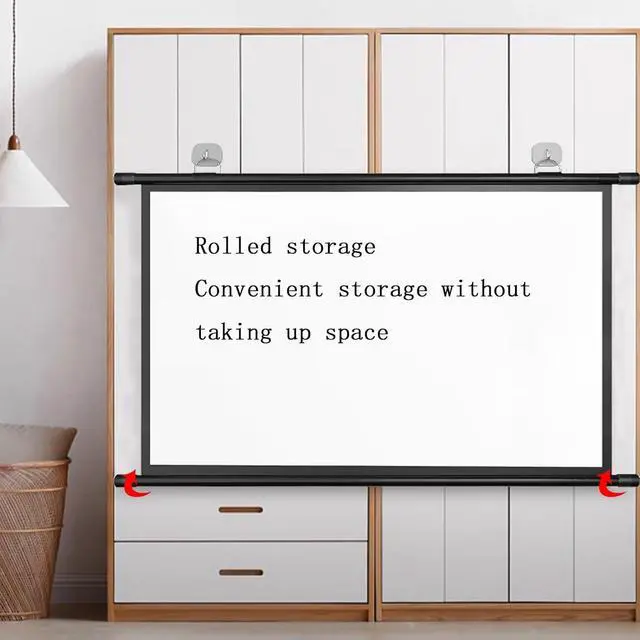 The portable projection screen roll-type storage is convenient and lightweight, and can be easily rolled up to save space. It has a flexible hanging ring, the hook position can be freely adjusted, the hanging ring can be moved freely, and the installation is flexible and convenient.