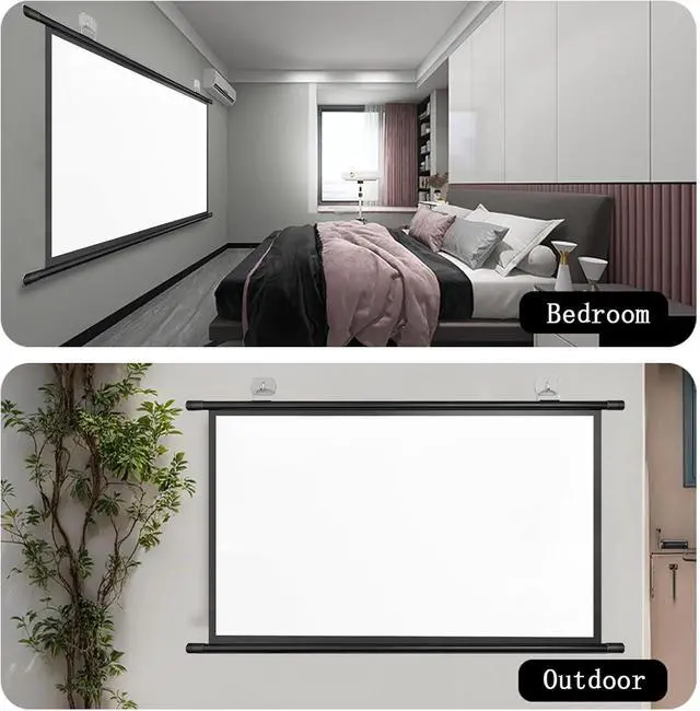 The projection screen is made of white fiberglass material, which is thicker than ordinary screens, has no wrinkles on the surface, and the projection colors are clearer. The four black borders are designed to enhance image contrast.