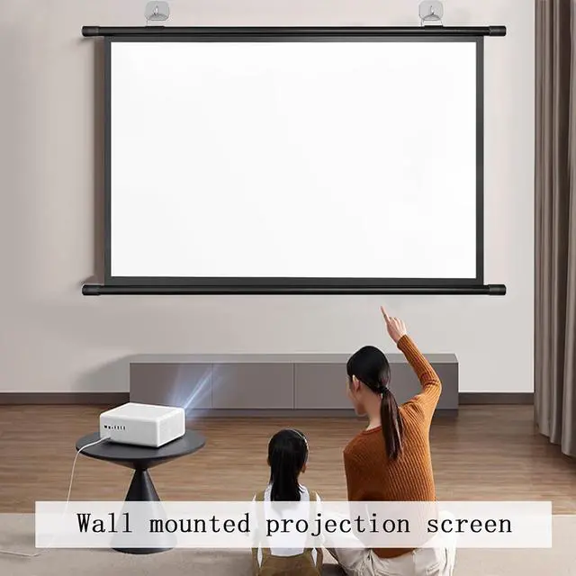 The projection screen can be easily fixed using hooks and non-marking nails. It can be installed and used quickly and can be applied to walls of different materials.