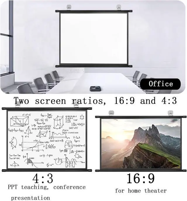 Movie screens are available in 16:9 and 4:3 formats. The 16:9 format is suitable for home theaters, games and KTV, and the 4:3 format is suitable for business, offices, schools, educational PPT and other workplaces.