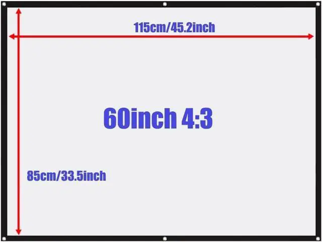 ? 60-120 inch projector screen with 16:9/4:3 aspect ratio, the projection screen supports 3D, 4K and Full HD images. Perfect for indoor and outdoor use.