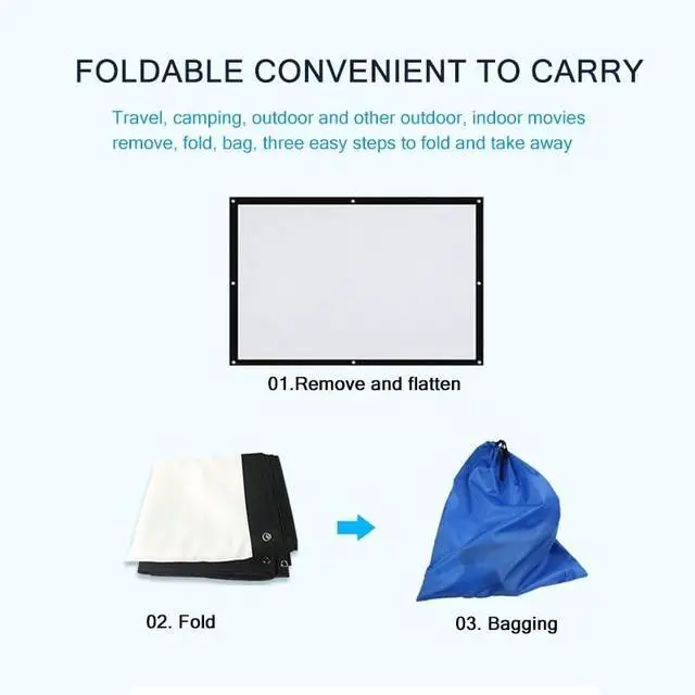 HD projector screen design is compact and lightweight, you can fold the video projection screen into a small size and put it into a backpack or storage bag, which can also bring you a convenient movie screen in any occasion