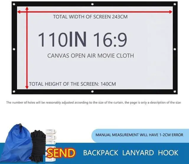 Polyester fiber material is wrinkle-resistant and conformable, surrounded by non-woven fabric wrap, the center is wrinkle-resistant and good, order a complimentary storage bag, rope and hooks. Folding and lightweight, you can take it with you to watch movies on the go