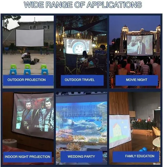 Projector movie screen with fine workmanship and durable grommets, you can hang it for viewing anytime and anywhere; Absorb black border, increase the center of watching movies and TV, enhance the viewing effect