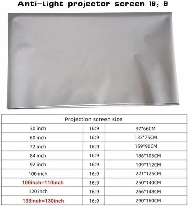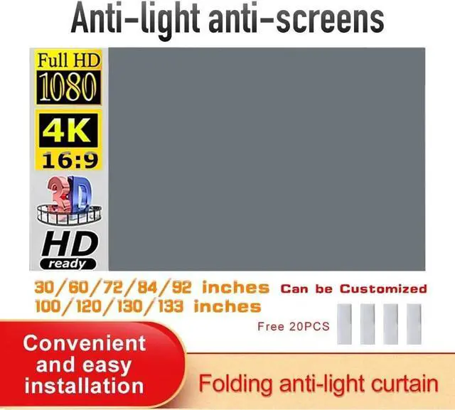 Projector Screen Screen Projector Screen Simple 16:9 Anti-Light Curtain Home Outdoor Office Portable 3D HD Smart Home(133 inch)