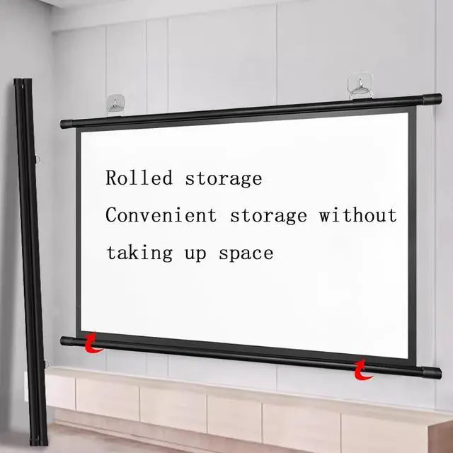 The projection screen is easy to install and can be installed on the wall with adhesive hooks, providing a better viewing experience and stabilizing the image. The hanging ring is flexible and the hook position can be freely adjusted, making installation flexible and convenient.