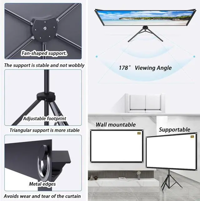 [Application] The freestanding projector screen is suitable for home theater movies, education, presentations, lectures, offices, classrooms, games and other indoor activities, and can also be used outdoors. Comes with a storage bag: it does not take up space after storage, can be placed in the trunk of a car, is easy to carry, and can be carried wherever you go, such as home, travel, etc.
