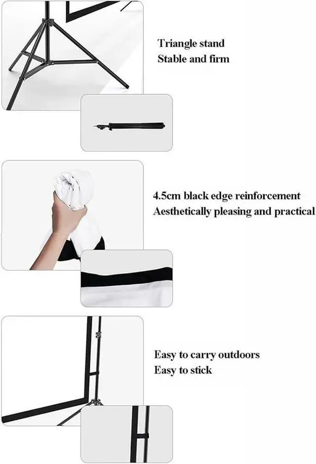 Stable double tripod design: It adopts a more stable double-triangular stand structure to enhance wind resistance and keep the picture stable even in a breeze. The unique edge design of the screen is easy to insert the column to ensure that the screen picture is intact.