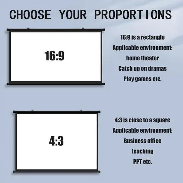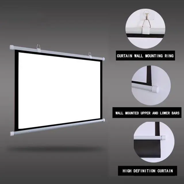Manual projection screen is made of high-quality white fiberglass material, with real color rendering and good anti-light transmission effect, bringing you and your family a high-definition visual experience