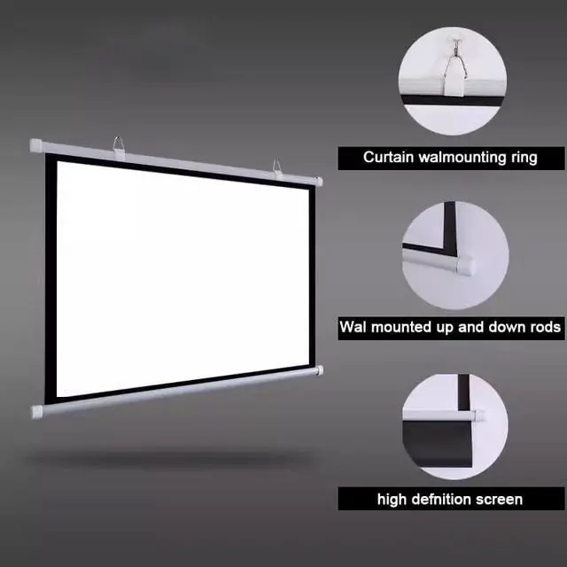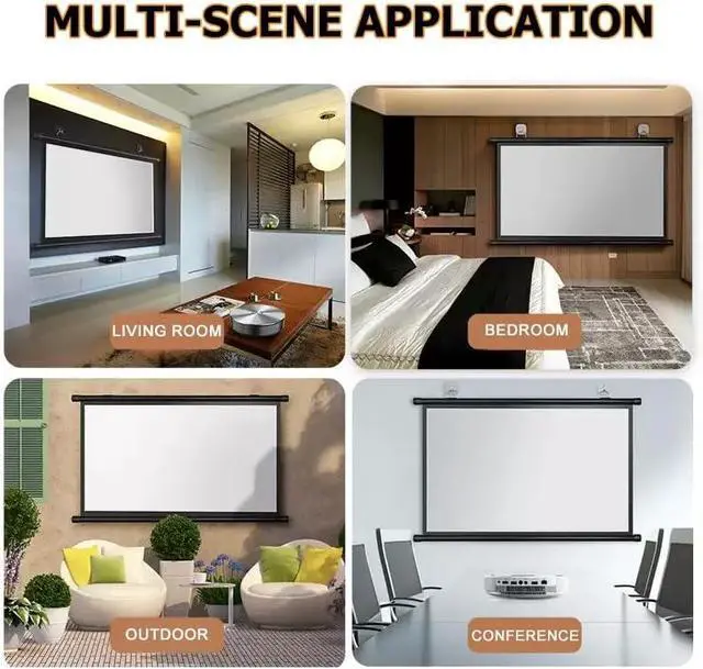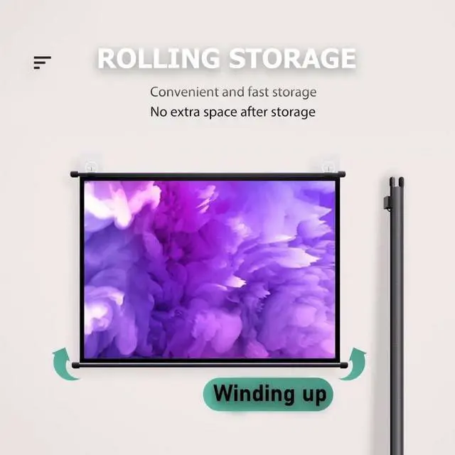 Durable: wall-mounted projection screen can be easily rolled up to save space when not in use, no color fading, no deformation for long-term use, thick and smooth, no wrinkles
