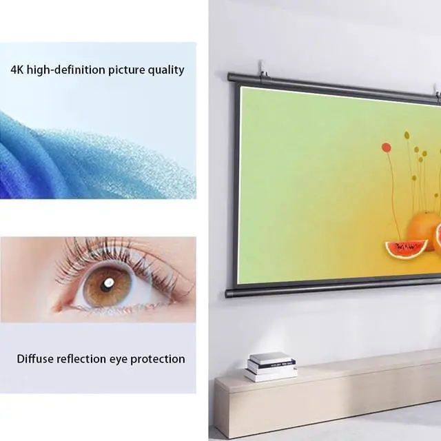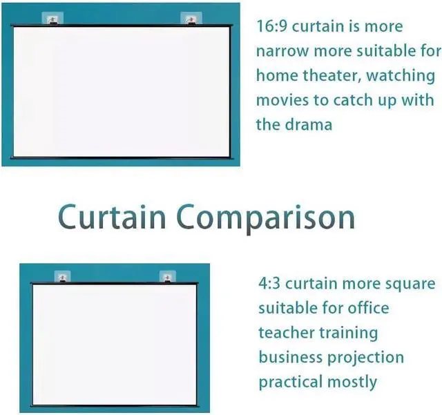 Installation Design: The projection screen is designed for home theaters, office meetings and classrooms. It features a 4:3, 16:9 screen format designed for displaying movies, presentations