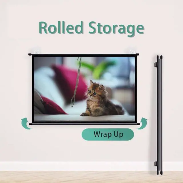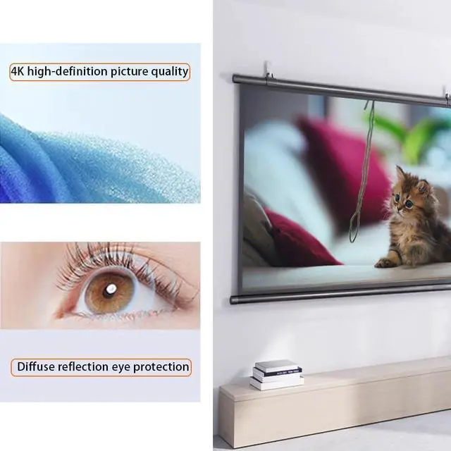 Easy Storage: Our projection screen adopts drop-down structure, easy to carry and store, easy to roll up, won't take up space after storage. It is the right choice for you