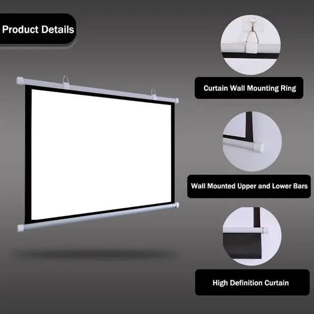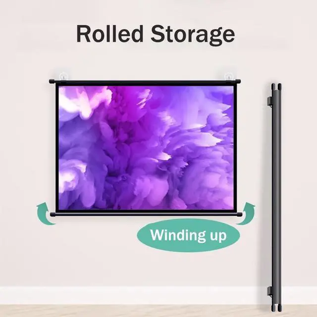 Portable: The manual projection screen is easy to carry and store, lightweight, easy to roll up, and will not take up extra space when stored, perfect for indoor and outdoor use.