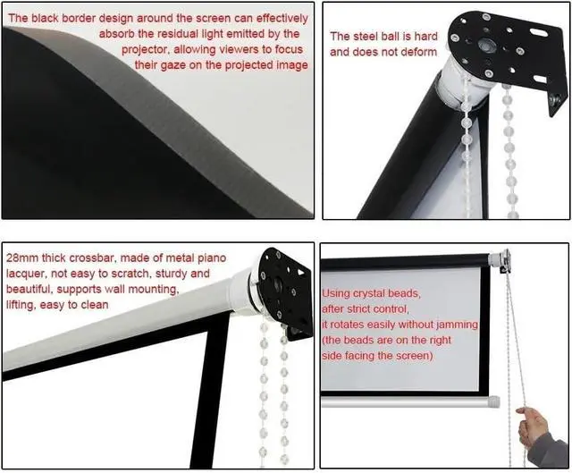 SIZE: This projector screen has an aspect ratio of 4:3 16:9. easy to mount on a wall or ceiling.
