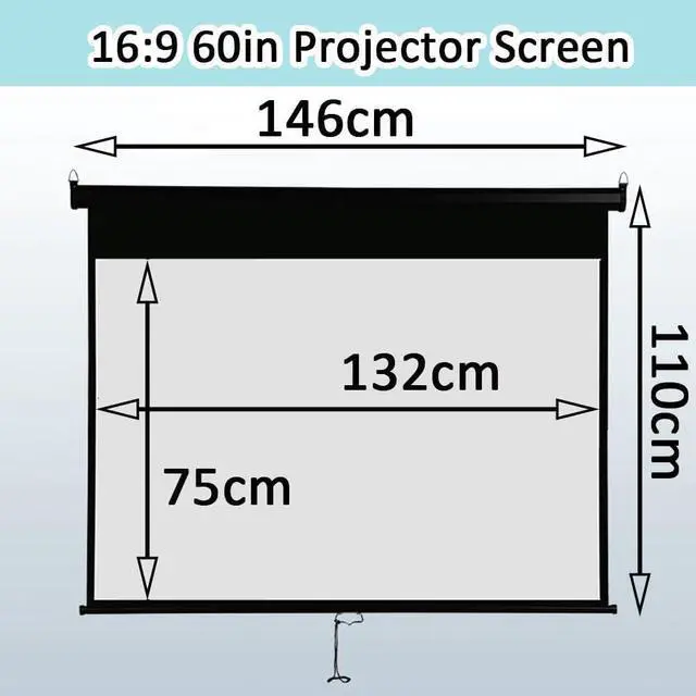 Versatile Use: With a 60-inch size and 16:9 aspect ratio, this screen is perfect for movies, games, office presentations, and more, whether indoors or outdoors.