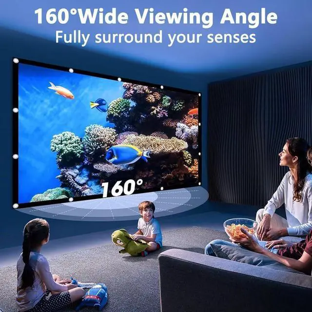 Wide-viewing experience: The projection screen's 160° wide viewing angle allows you to enjoy a comfortable viewing experience without having to sit directly in front of the screen, for parties or family movie nights