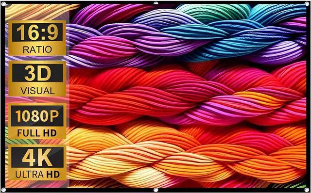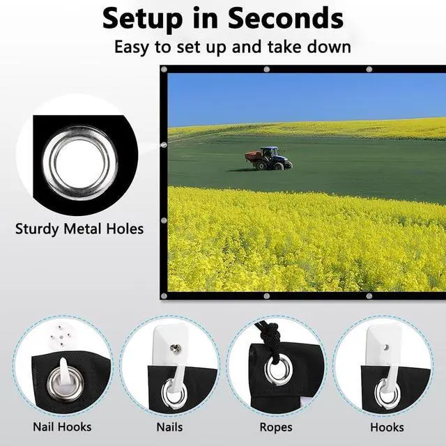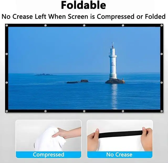 Wrinkle-free fabric: The projector screen is made with a soft-touch and stretchy thickened milk polyester, ensuring no wrinkles when folded or compressed, providing sharper images, brighter colors, and no color casts