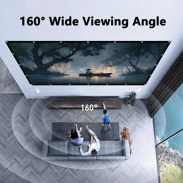160° wider viewing angles: The projector screen has a wide viewing angle of up to 160°, which means you don't need to sit directly in front of the screen, just choose the most comfortable viewing position to enjoy a wonderful movie night
