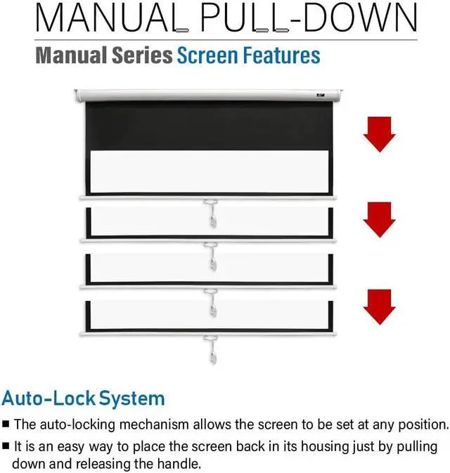 EASY SET-UP AND CLEANFeatures a 2-inch interval auto-lock mechanism that allow for various height settings and a screen lanyard for easy pull down. 8k projector screen is easy to clean with soap and water.