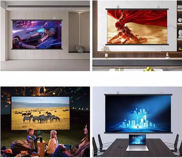 No drilling, ultra-clear anti-light projection screen, 8K ultra-clear picture quality/No drilling, movable/direct projection during the day, hand-roll storage, quick disassembly, portable and easy to move