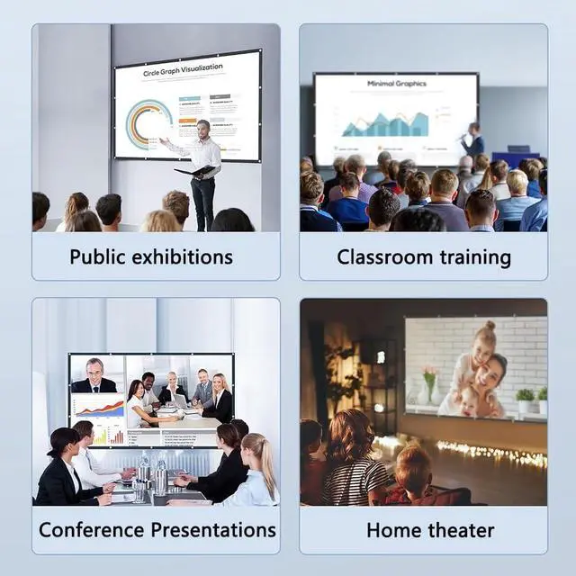 Wide range of applications: The projection screen has a good picture and a lightweight design, which is not only suitable for indoor use, such as home theater, education, presentation, lecture, office, classroom or game, etc., but also suitable for outdoor use