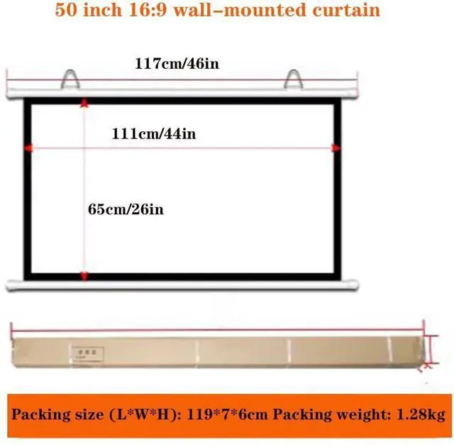 Wall-mounted projection screen: the hook can be moved freely, the hook can be adjusted left and right, different distances can be freely matched with the hook, the installation is simple, ropes, sticky hooks, nails can be installed