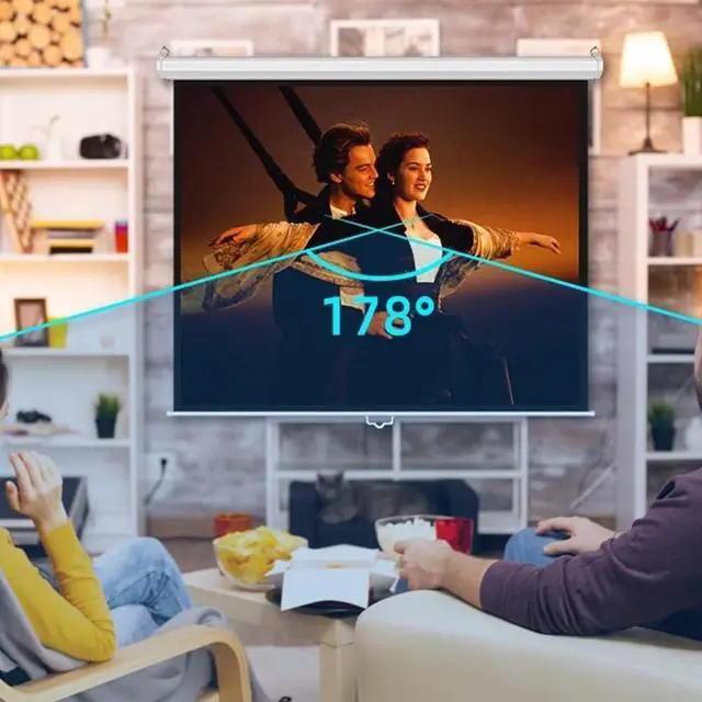Versatile Installation: Suitable for both ceiling and wall mounting, this portable projection screen is perfect for home theaters, offices, classrooms, outdoor backyard setups, and more.